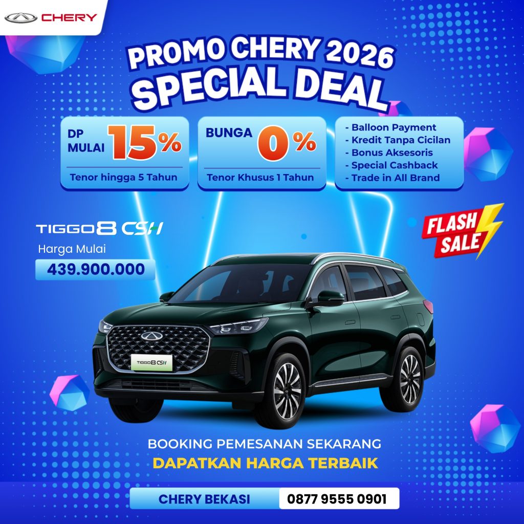Selamat datang di Website Cherymobilofficial.id, Dealer Resmi Mobil Chery Pusaka Tambun - Bekasi, dengan mengusung Layanan 3S (Sales, Service & Sparepart) siap melayani Kebutuhan Berkendara Anda, yang nyaman, canggih serta aman. Dan juga berbagai informasi Product, Harga dan Promo Pembelian Mobil Chery bisa anda temukan Melalui Website ini.